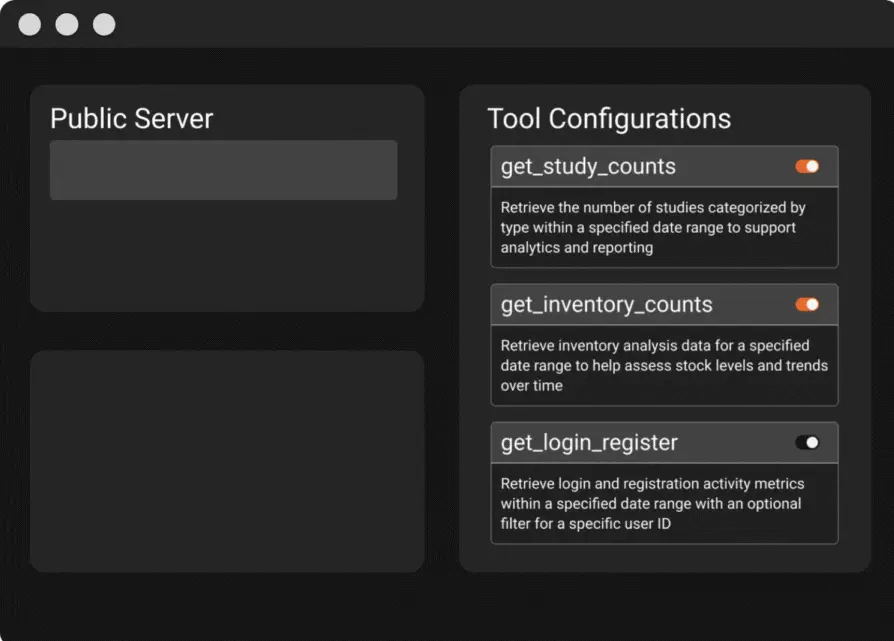 Carga tu archivo o URL. Detectamos tus endpoints y los convertimos automáticamente en tools listas para usar. Sin configuración ni dependencias